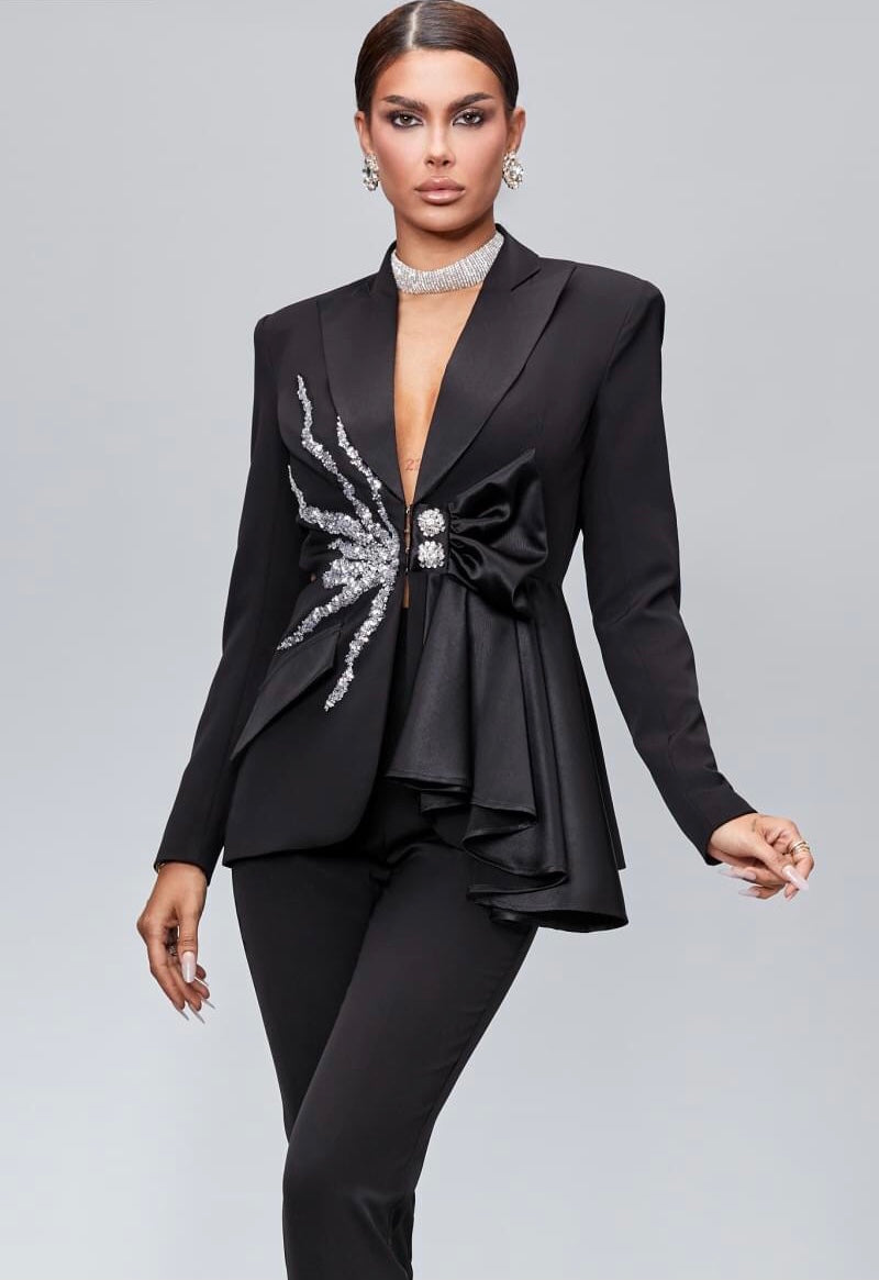 Tailleur con applicazione in Swarovski chiusura a fiocco Made in Italy giacca foderata Taglie 38/58