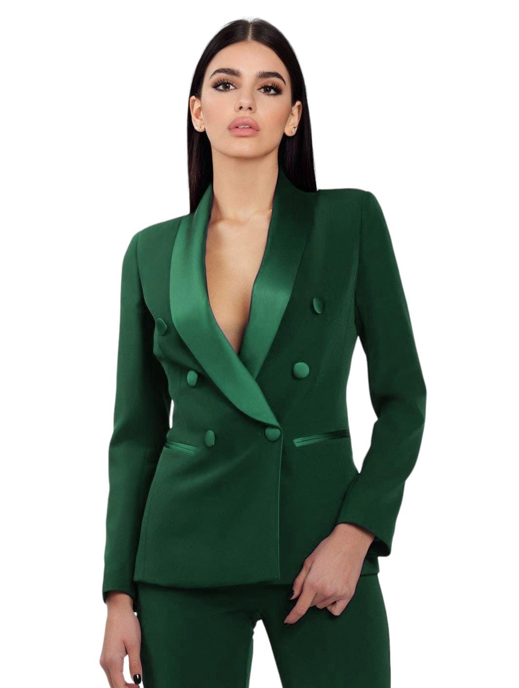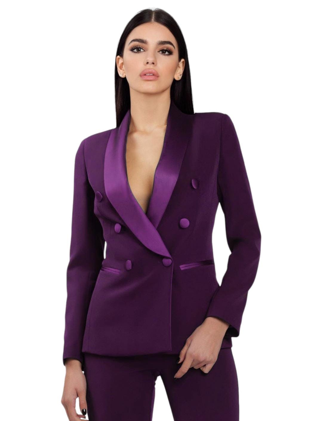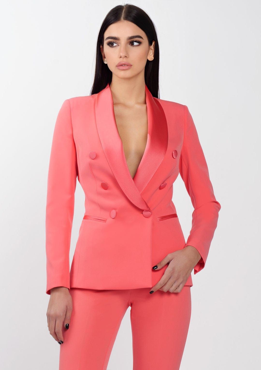 Questo tailleur italiano, realizzato con cura e con materiali di alta qualità, presenta inserti in raso che donano un tocco di eleganza e raffinatezza. Disponibile in taglie dal 38 al 56, questo tailleur è perfetto per un look sofisticato e di classe, perfetto per qualsiasi occasione.